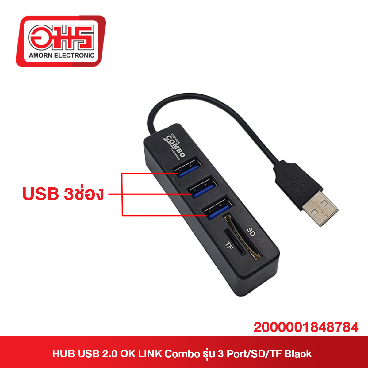 HUB USB 2.0 OK LINK Combo รุ่น 3 Port/SD/TF Black